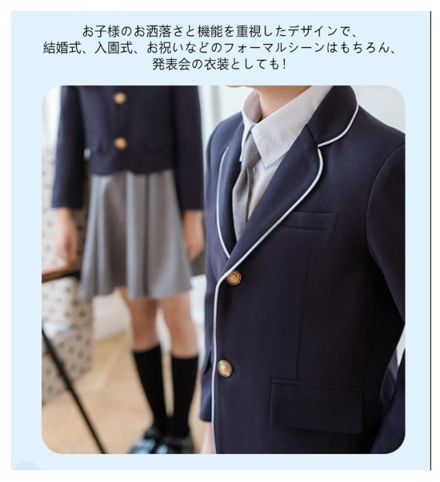 | お受験や面接、入卒学式から冠婚葬祭まで使える万能スーツセット。 お子様のお洒落さと機能を重視したデザインで、結婚式、入園式、お祝いなどのフォーマルシーンはもちろん、発表会の衣装としても! イギリス風のデザイン、周りと差をつけるのが嬉しいポイント。 お子様の晴れ舞台に大活躍間違いなしの男の子/女の子スーツ! | |