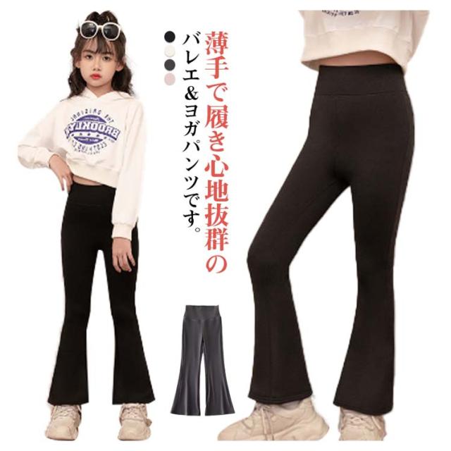 美脚 フレアパンツ 長ズボン ロングパンツ バレエパンツ レギンス バレエパンツ ハイウエスト ダンス 女の子 ジュニア キッズ服 子ども服 ヨガパンツ ストレッチ 伸縮性 無地 大きいサイズ ダンス衣装 ロング丈 可愛い