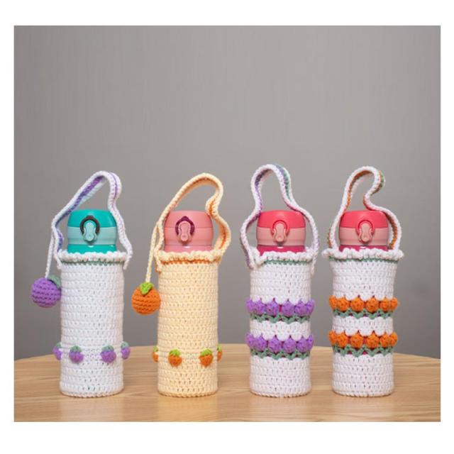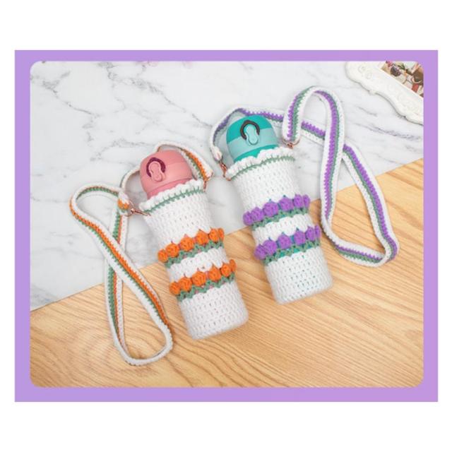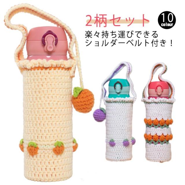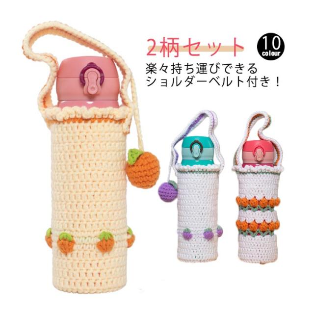 水筒ケース 2枚セット ペットボトル 水筒カバー かわいい ケース 水筒ケース ニット カバー ショルダー 水筒ホルダー 持ち運び 子供 ストラップ
