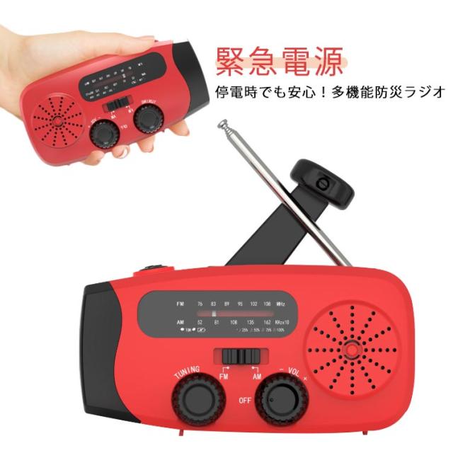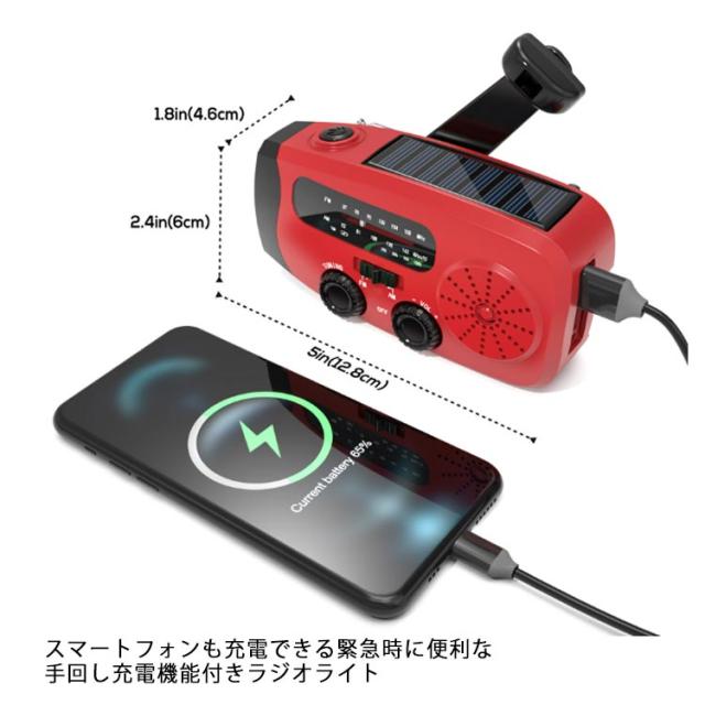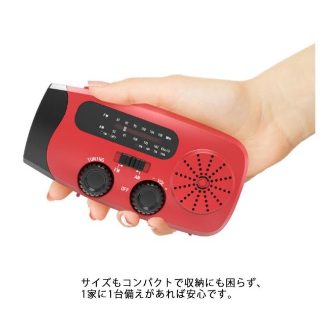 | ・停電時でも安心!多機能防災ラジオ ・充電方式3パターン(手回し充電式・USB充電式・ソーラー充電式) ・スマートフォンも充電できる緊急時に便利な手回し充電機能付きラジオライト ・サイズもコンパクトで収納にも困らず、1家に1台備えがあれば安心です。 | |