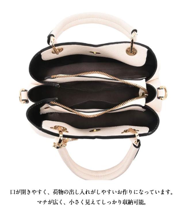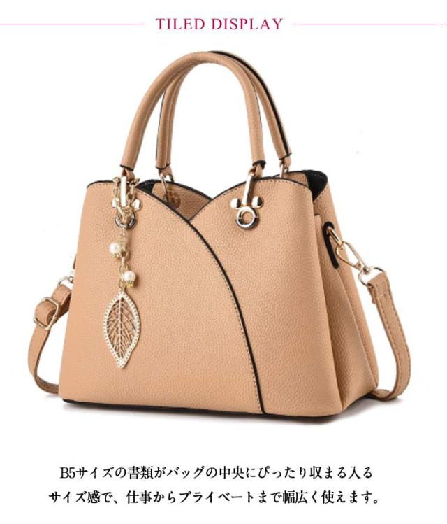 | エレガントなデザインと実用性を兼ね備え、あらゆるシーンで活躍するハンドバッグです。 B5サイズの書類がバッグの中央にぴったり収まる入るサイズ感で、仕事からプライベートまで幅広く使えます。 内部には便利な仕切りが付いており、小物を整理整頓しながら持ち運べるため、日常使いにも最適です。 シボ感のある合皮素材を採用し、落ち着きのある大人な印象。 本体と同じ合皮を使用したロングショルダー付きでショルダーバッグにもなる2WAY仕様。 口が開きやすく、荷物の出し入れがしやすいお作りになっています。 マチが広く、小さく見えてしっかり収納可能。 普段使いはもちろん、通勤、入学、卒業、結婚式などセレモニー全てのシーンでお使い頂けます。 | |