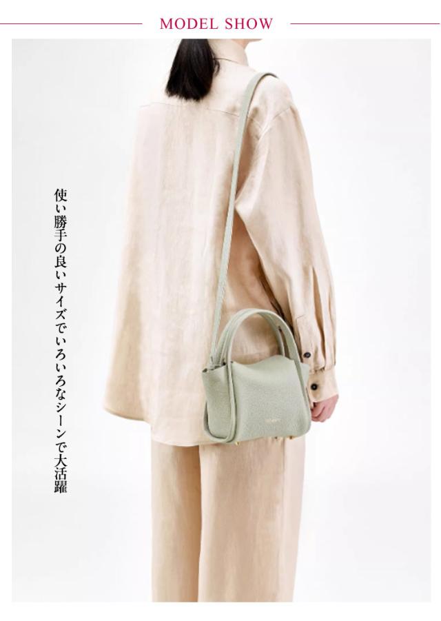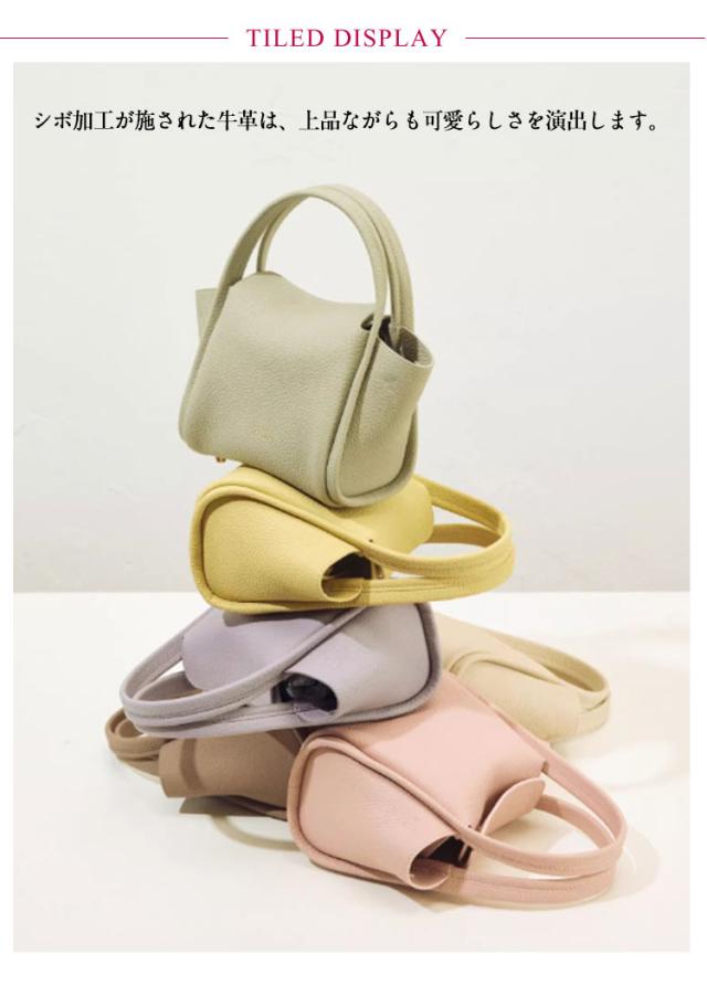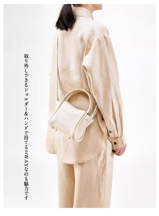| コロンとしたデザインが目を引く上質レザーの2WAYミニトート 使い勝手の良いサイズでいろいろなシーンで大活躍 カジュアルからフォーマルまで幅広いコーディネートにも合わせやすく毎日使える定番バッグ シボ加工が施された牛革は、上品ながらも可愛らしさを演出します。 無駄のないミニマルなデザインが手元にすっきり馴染んで 取り外しできるショルダー&ハンドで持てる2WAYなのも魅力です 口が開きやすく、荷物の出し入れがしやすいお作りになっています。 マチが広く、小さく見えてしっかり収納可能。 | |