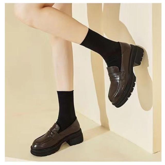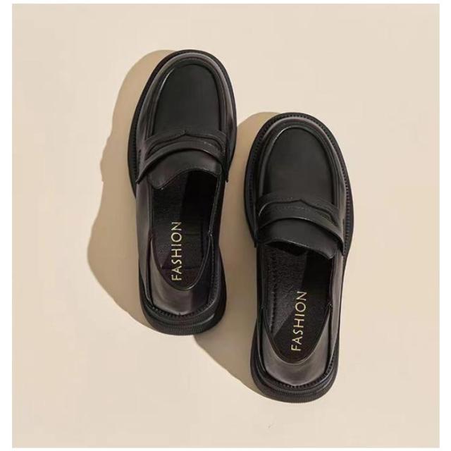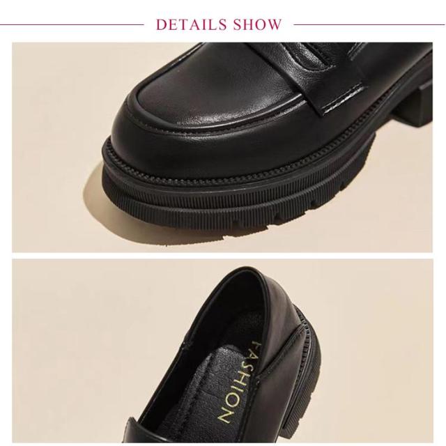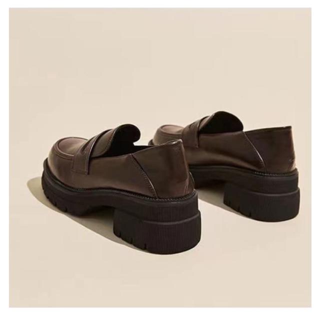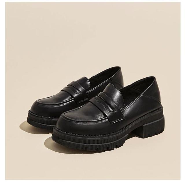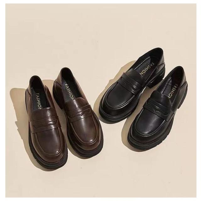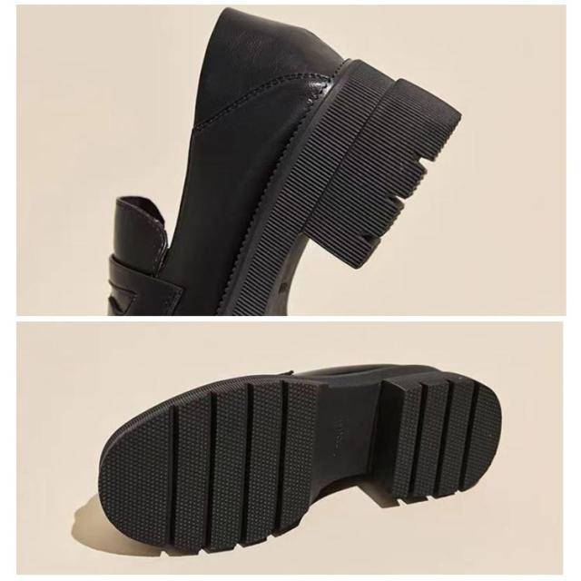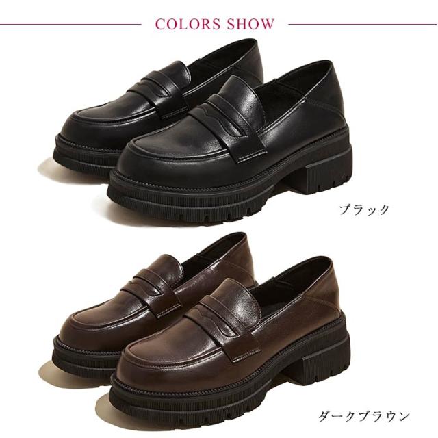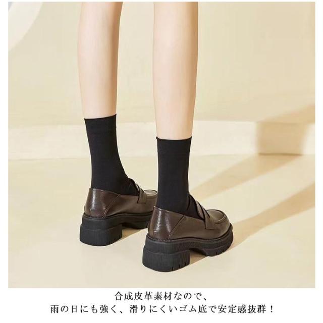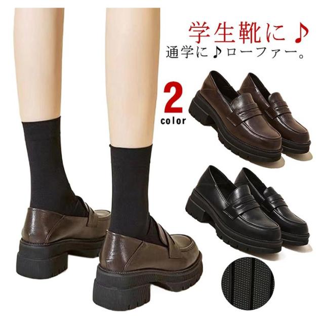 | 学生靴に♪通学に♪ローファー。 約5.5cmヒールでスタイルアップ!約5.5cmのヒールと前底ストームでリーズナブルで美脚&可愛いの絶妙なバランス。 合成皮革素材なので、雨の日にも強く、滑りにくいゴム底で安定感抜群! | |