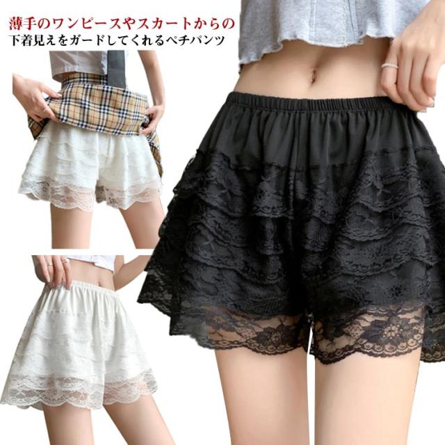 透け防止 ペチパンツ レース ウエストゴム ウエストゴム レース ミニ丈 ルームウエア 可愛い ペチコート インナーパンツ 透けない スカート下 下着 肌着 無地 かわいい おしゃれ インナーショーツ レディース