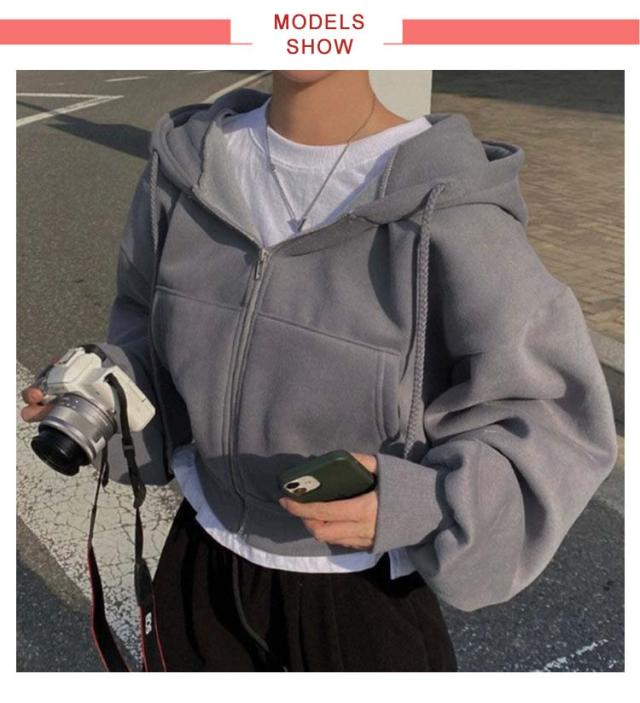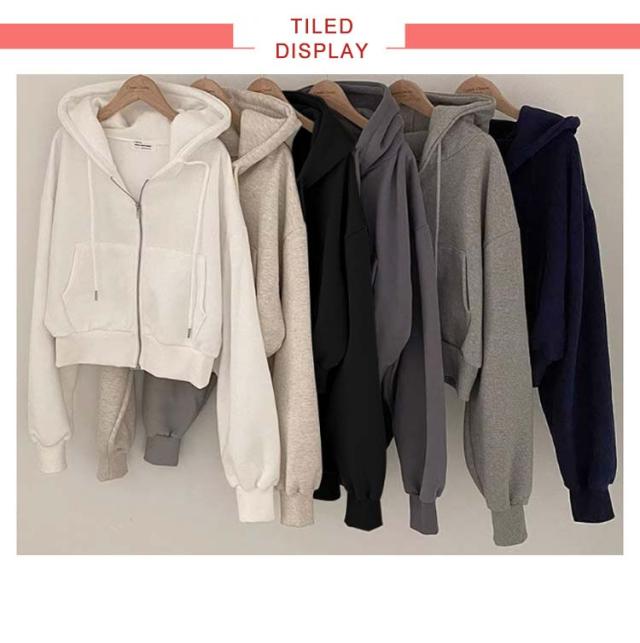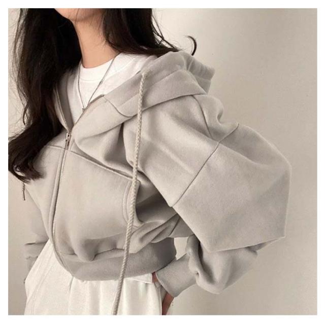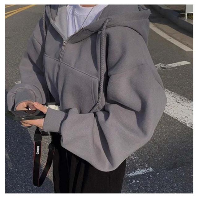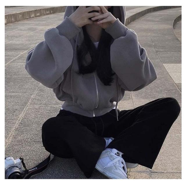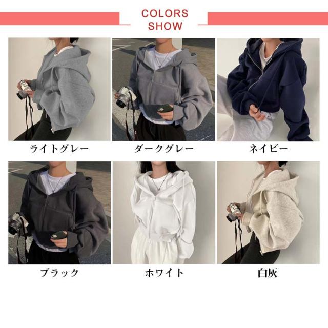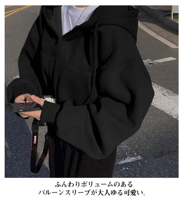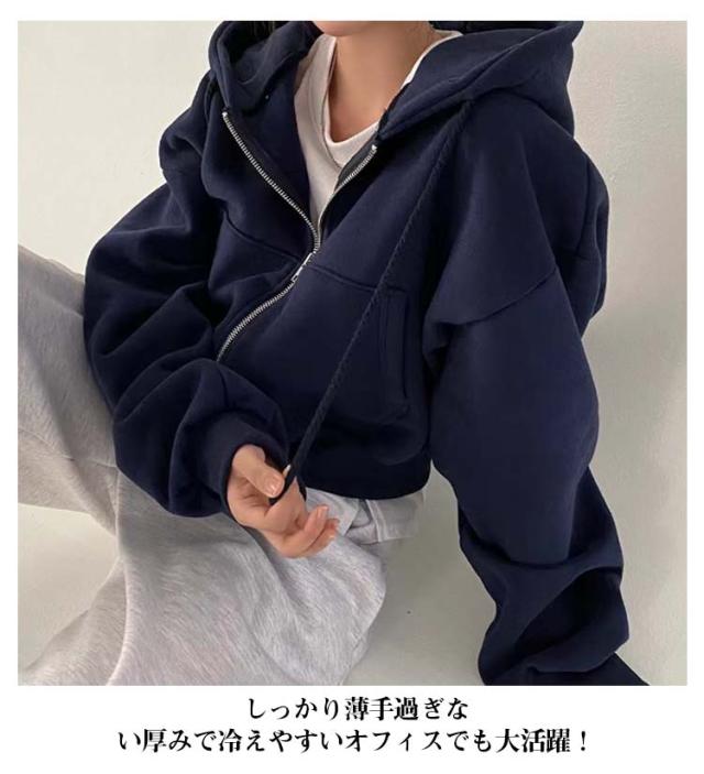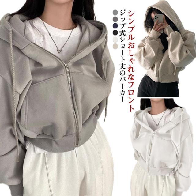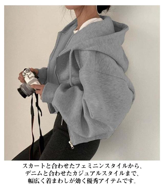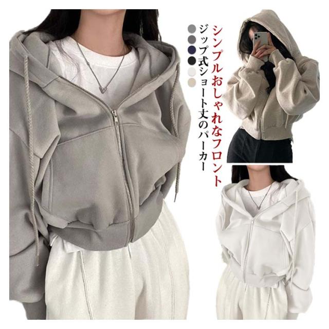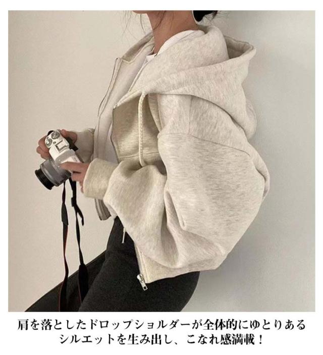 フード付き ショート丈 おしゃれ レディース トップス カジュアル ガーリー フーディー スウェット ショート丈 パーカー オーバーサイズ 長袖 無地 フロントジップ 女性 お洒落 こなれ感 アウター スポーティー 女子会 春 秋 体型カバー
