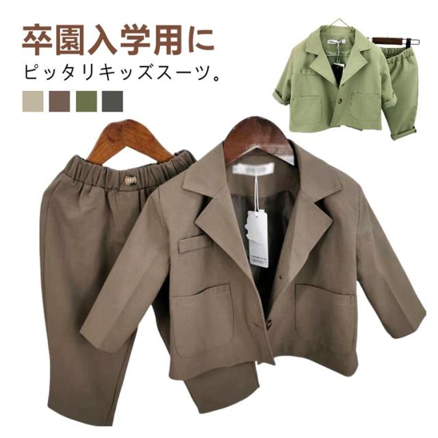 100 おしゃれ 韓国 子供 子供服 入園式 韓国 キッズスーツ スーツ 卒業式 入学式 発表会 フォーマルスーツ 結婚式 スーツ 七五三 90 男の子 110 120 130cm 発表会 2点セット 送料無料 ベージュ ブラウン グリーン