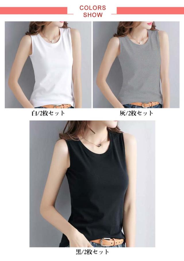 レディース 2枚セット タンクトップ インナー レイヤード ラウンドネック 体型カバー 肌着 ゆったり 重ね着 灰 ノースリーブ タンクトップ 下着 トップス 白 大きいサイズ 黒 レイヤード 春夏 秋 無地 シンプル おしゃれ