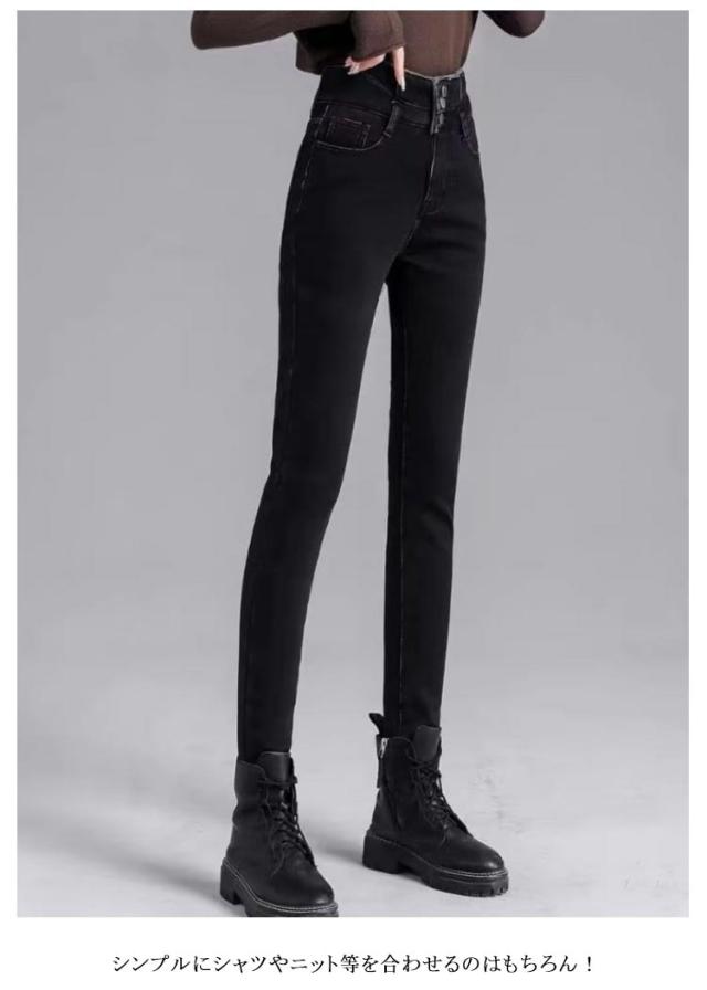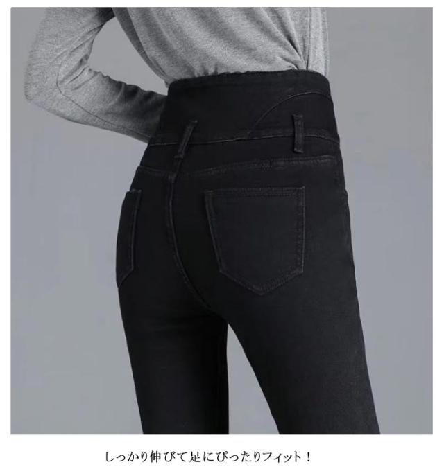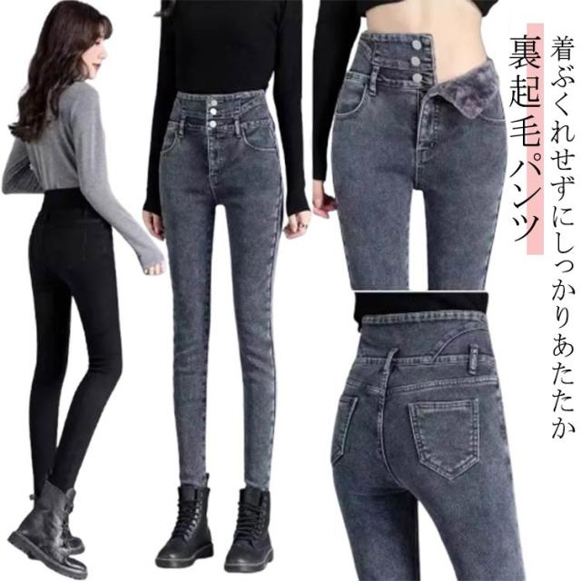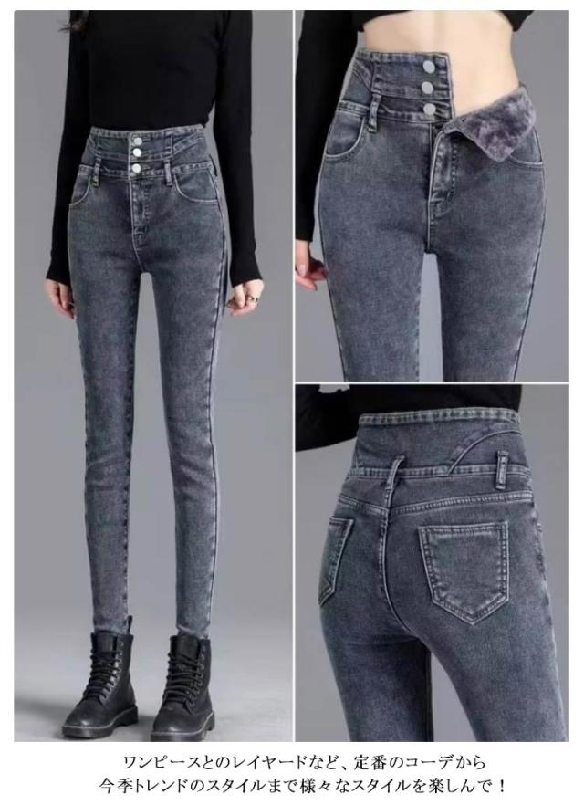 美脚見せ ストレッチ レディース グレー ハイウエスト スキニーパンツ ブルー 黒 デニムパンツ ブラック 裏起毛 ウォッシュブルー インディゴ 大きいサイズ ジーパン あったかい 細身 ボトムス 裏起毛 春秋冬 防寒 シンプル ストレッチパンツ