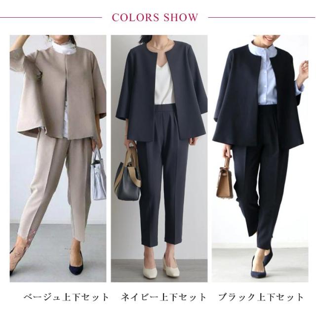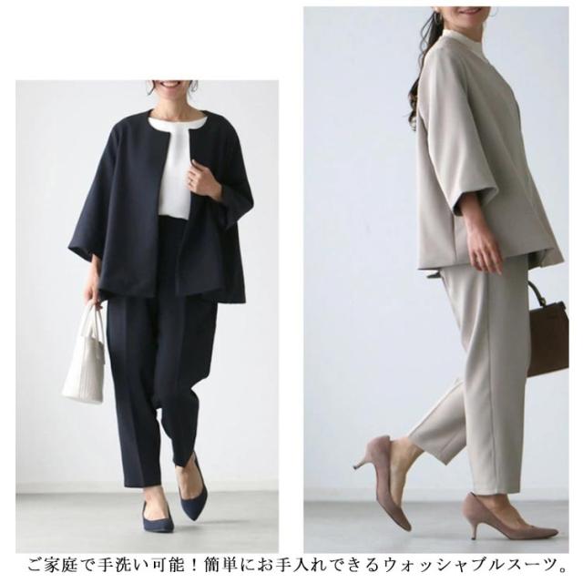 セレモニースーツ 50代 40代 卒業式 パンツスーツ パンツスーツ 大きいサイズ 洗える フォーマルスーツ ママスーツ 入学式 おしゃれ ノーカラー テーパードパンツ セットアップ 2点セット レディース 韓国 フォーマル スーツ 春 秋