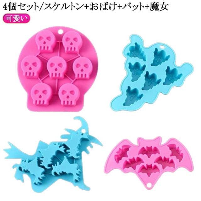 冷蔵 ケーキ型 ミニ 4個セット/スケルトン+おばけ+バット+魔女 ケーキ型 マドレーヌ ハロウィン キャラクター 型抜き シリコン型 シリコン お菓子作り シリコン製 製菓 立体 手作り ケーキ 電子レンジ オーブン 食洗機 ハロウィン 冷凍 耐熱 耐冷