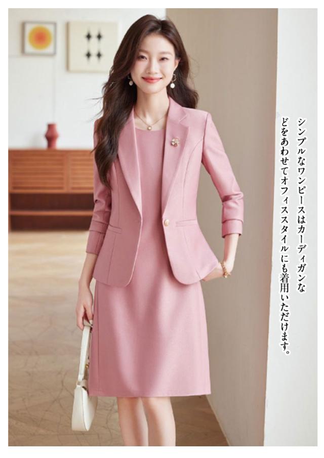 | ノースリーブワンピースとテーラードジャケットの2点セットです。【S-5XL】 セットアップではもちろん、それぞれ単品での着回しも◎ すっきりとしたデザインがスタイリッシュと女性らしさを両立させます。 ワンピースのネックラインはゆとりのある空き具合。すっきりした首回りはアクセサリーとも相性抜群♪ ワンピースはシンプルなIラインシルエットで気になる腰回りを自然にカバー! ジャケットは窮屈なイメージを覆す、着心地抜群のサイズ感 滑りやすい裏地を使用しているので着心地抜群です。 セットアップで入学式や卒業式などのセレモニーや学校行事、七五三やお宮参りなどのフォーマルシーンに最適。 シンプルなワンピースはカーディガンなどをあわせてオフィススタイルにも着用いただけます。 | |