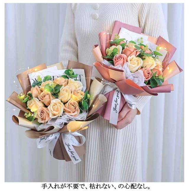 | SNS映え間違いなし!袋&LEDライト付き造花花束 母を想う温かい気持ちが伝わる花。 手入れが不要で、枯れない、の心配なし 花がボリュームがあり見栄えが良い。 存在感抜群のLEDライト付き、 美しくより華やかに雰囲気を演出してくれます。 母の日や敬老の日はもちろん、結婚祝いや、 出産、誕生などの記念日にも大活躍のプレゼント。 | |