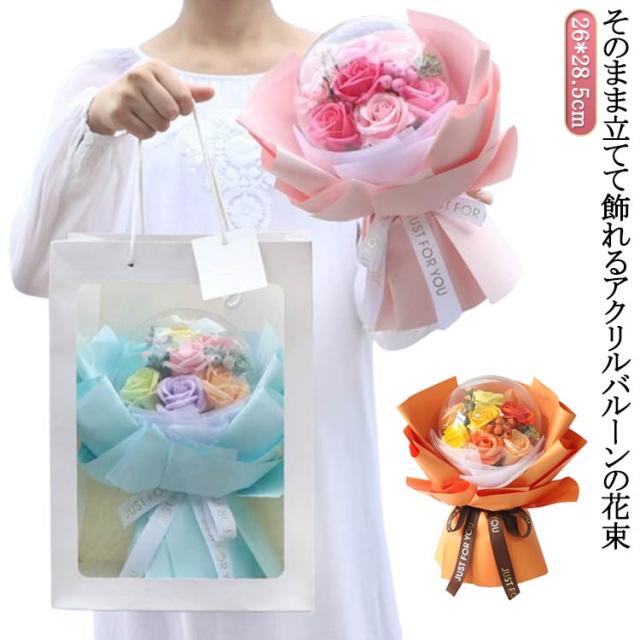花束 ホワイトデー 透明 誕生日祝い お祝い 卒園 発表会 卒業祝い プチギフト 卒業 ブーケ 母の日 バルーンシャボン メッセージ クリア 可愛い ソープフラワー 立てる お手頃