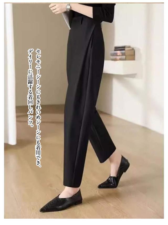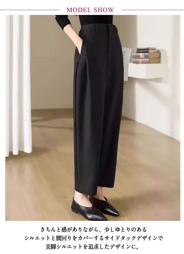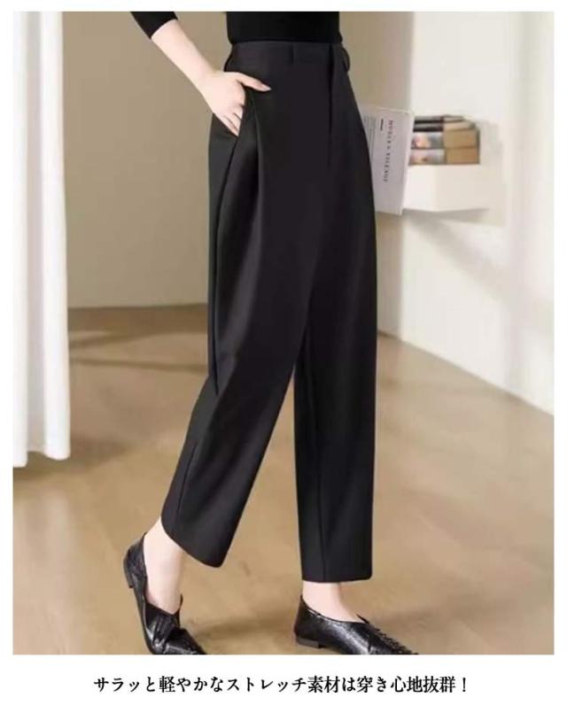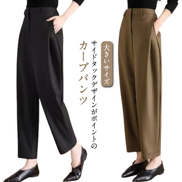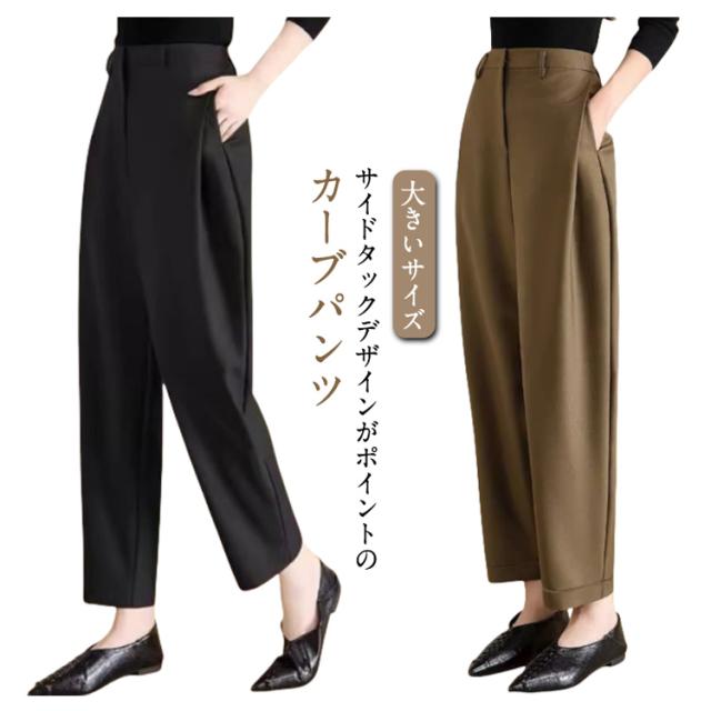 スラックス スーツパンツ パンツ レディース スラックス カーブパンツ ハイウエスト ゆったり 体型カバー 大きいサイズ 40代 50代 テーパードパンツ 30代 入学式 入園式 卒業式 卒園式 通勤 パンツのみ セレモニースーツ オフィス カジュアル きれいめ 黒
