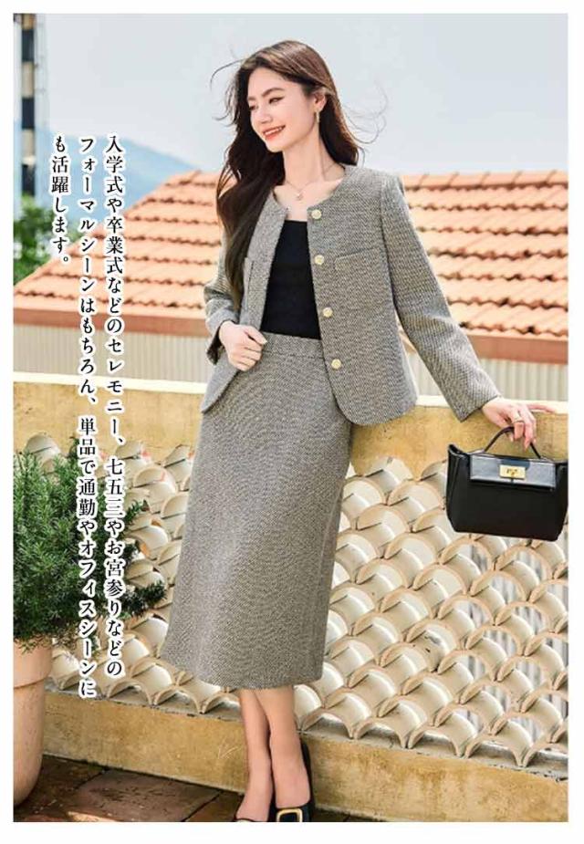 セットアップ セレモニースーツ セレモニースーツ ノーカラージャケット 卒園式 スカートスーツ スカート セレモニー 卒業式 レディース 入学式 ママスーツ 入園式 裏地付き ロングスカート ママ 母 30代 40代 50代 大きいサイズ カジュアルスーツ