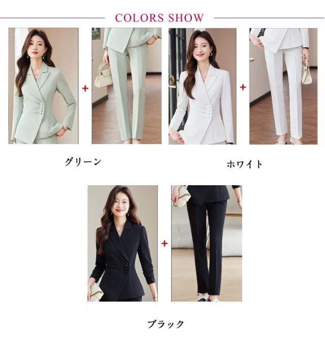 | テーラードジャケットとテーパードパンツの2点セットです。【S-4XL】 セットアップではもちろん、それぞれ単品での着回しも◎ すっきりとしたデザインがスタイリッシュと女性らしさを両立させます。 テーラードの深めVネックが顔周りをすっきりみせます。 脚長効果抜群のテーパードシルエットに、ラインがキレイに見えるセンタープレスを施したパンツ。 さらりとした肌触りの裏地で、オールシーズン活躍できます。 オケージョンシーンではもちろん、ビジネスや様々なシーンで大活躍♪ おすすめ着用シーン【同窓会】【食事会】【セレモニー】【発表会】【デイリー】【オフィス】【お宮参り】【入卒式】【お受験】【顔合わせ】【学校行事】【七五三】【冠婚葬祭】【結婚式】【二次会】【パーティー】にご利用いただけます。 | |