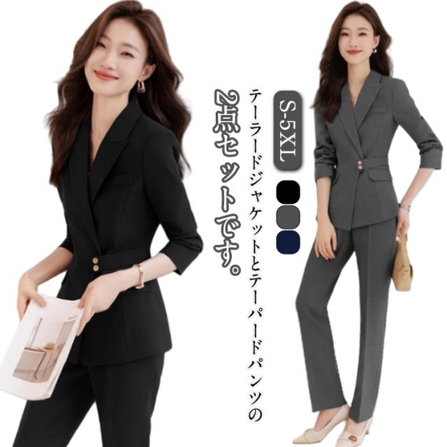 セレモニースーツ 40代 レディース パンツスーツ セレモニースーツ 卒業式 セットアップ テーラードジャケット テーパードパンツ 入園式 30代 大きいサイズ ママ 入学式 セレモニー フォーマル 母 卒園式 50代 通勤 カジュアルオフィス スッキリ 黒 ネイビー