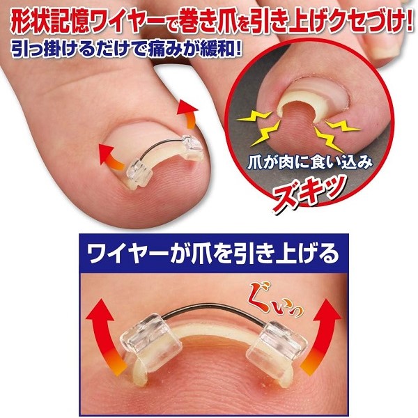 形状記憶ワイヤーで巻き爪を引き上げクセづけ足指 巻き爪 引き上げ クセづけ 巻き爪対策 食い込み防止 圧迫防止 痛みの緩和 形状記憶ワイヤー ワイヤーガード 簡単装着