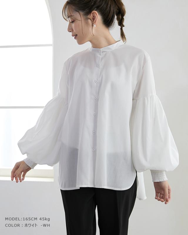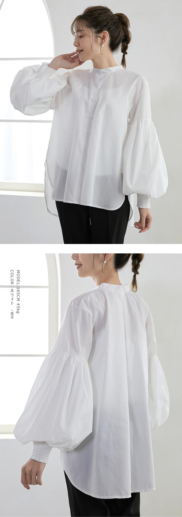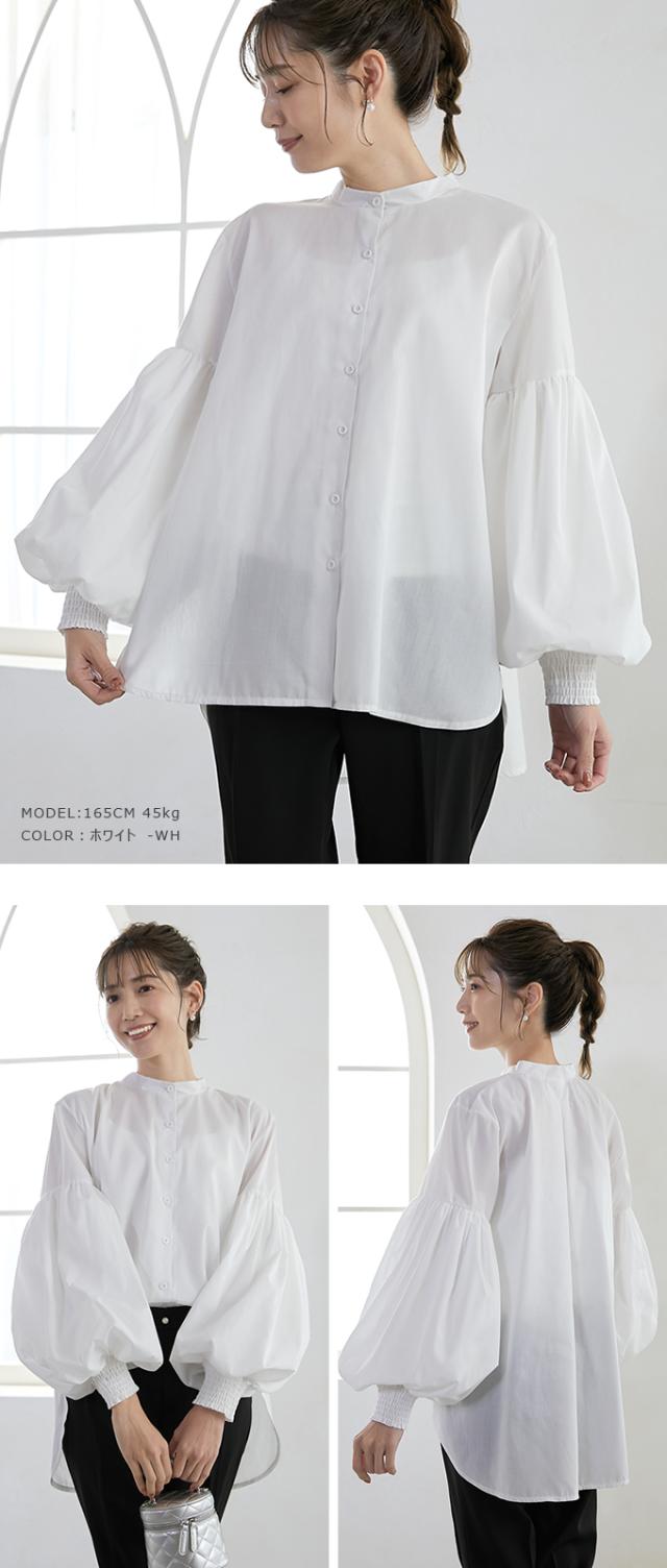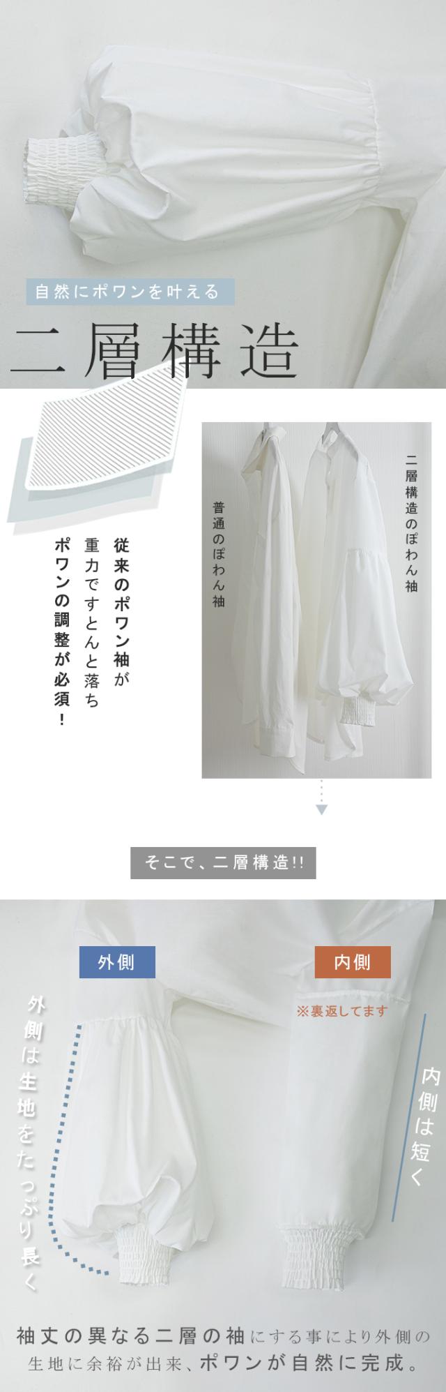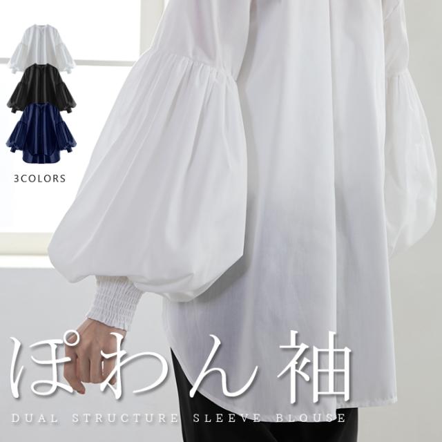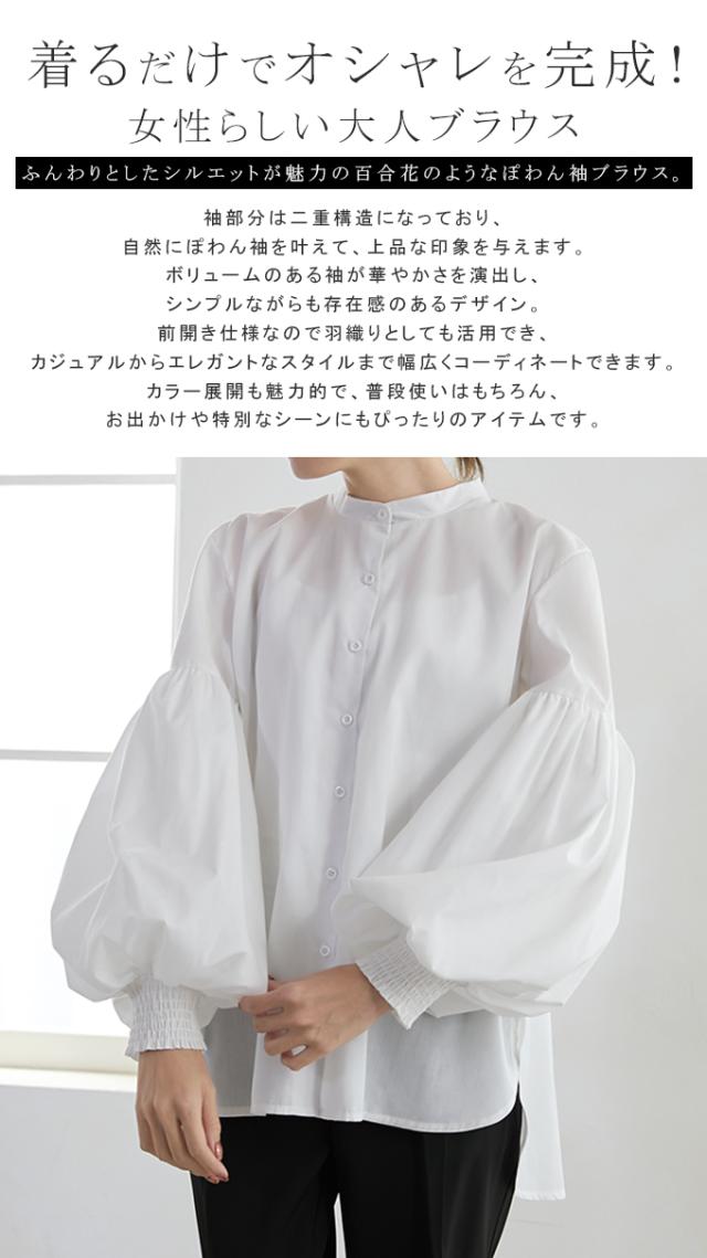 50%OFF 2990円トップス ブラウス 二層構造ポワン袖ブラウス ぽわん袖 ポワン袖 百合花ぽわん 2重構造 シャツ ブラウス 白 着回し レディース おしゃれ