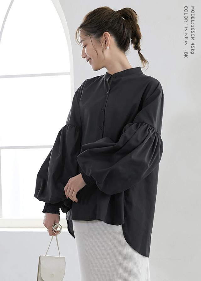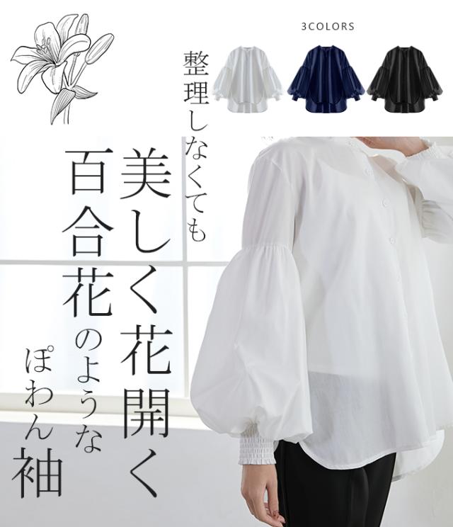 ふんわりとしたシルエットが魅力の百合花のようなぽわん袖ブラウス。