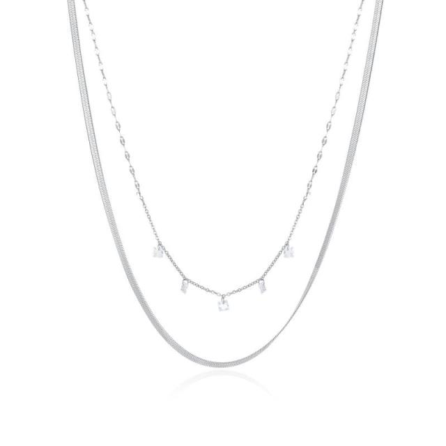 [Deelfel] ネックレス レディース 金属アレルギー対応 シルバー 二連ネックレス スネークチェーン ジルコニアペンダント チタン製 友達 誕生日 記念日 パーティー ギフト ファッション アクセサリー (シルバー)