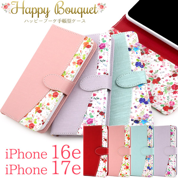 スマホケース iPhone17e iPhone16e 手帳型ケース ハッピーブーケ 花柄 フラワー カラーレザーケース アイフォン16e 合皮 レザーケース 保護 カバー アイホン スマホ スマホカバー アイフォン 画面保護 カード入れ スタンド iPhone 16e かわいい 女性 レディース おしゃれ