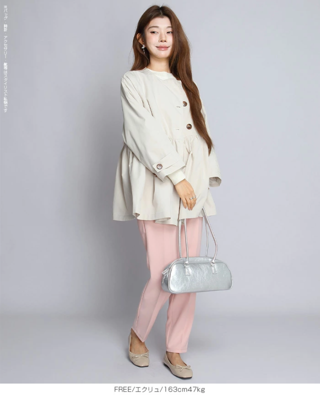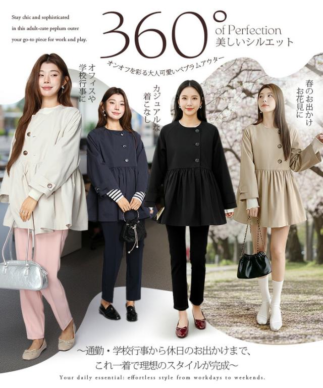 女性らしいペプラムデザインが立体的なフォルムを作るスプリングアウター。