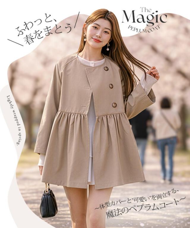 【ペプラムデザインスプリングコート】