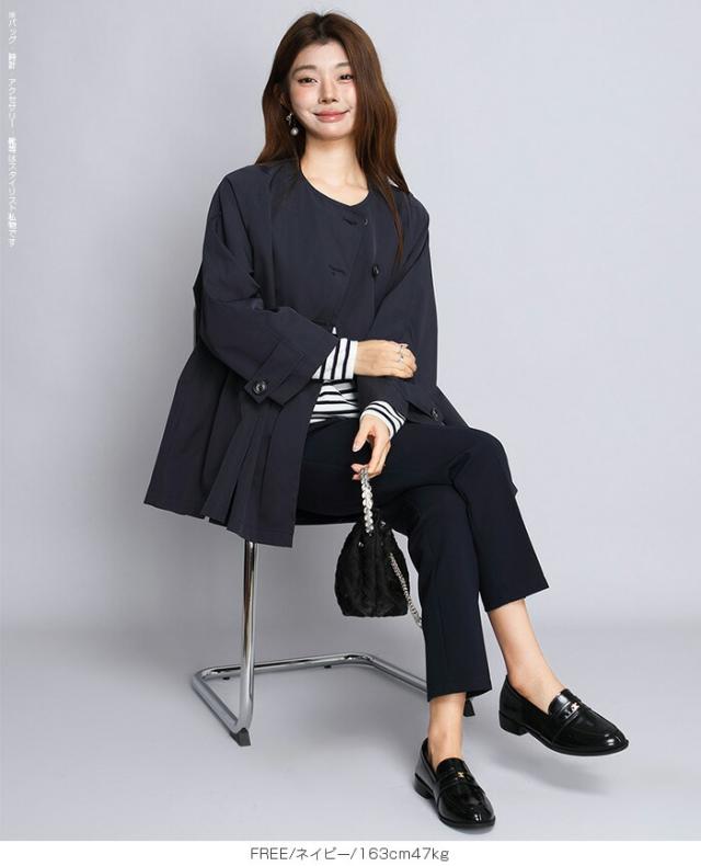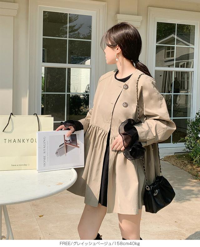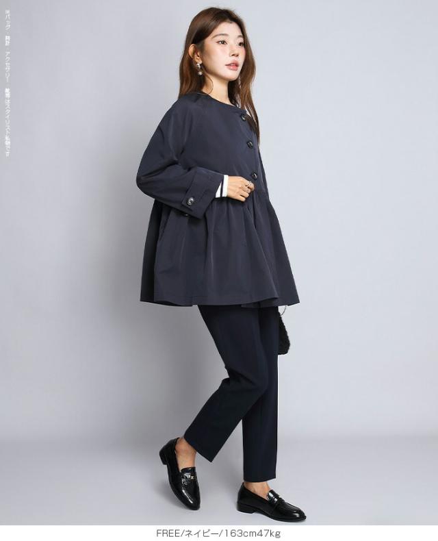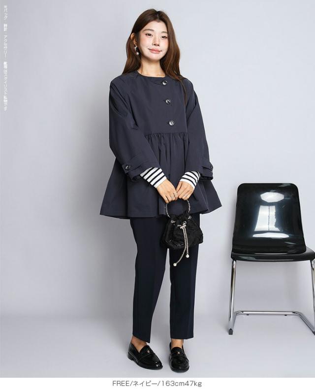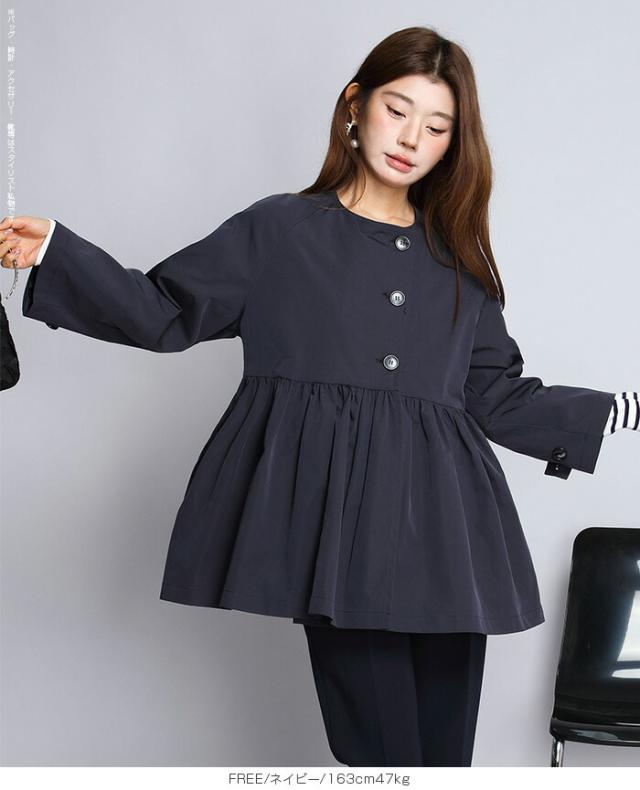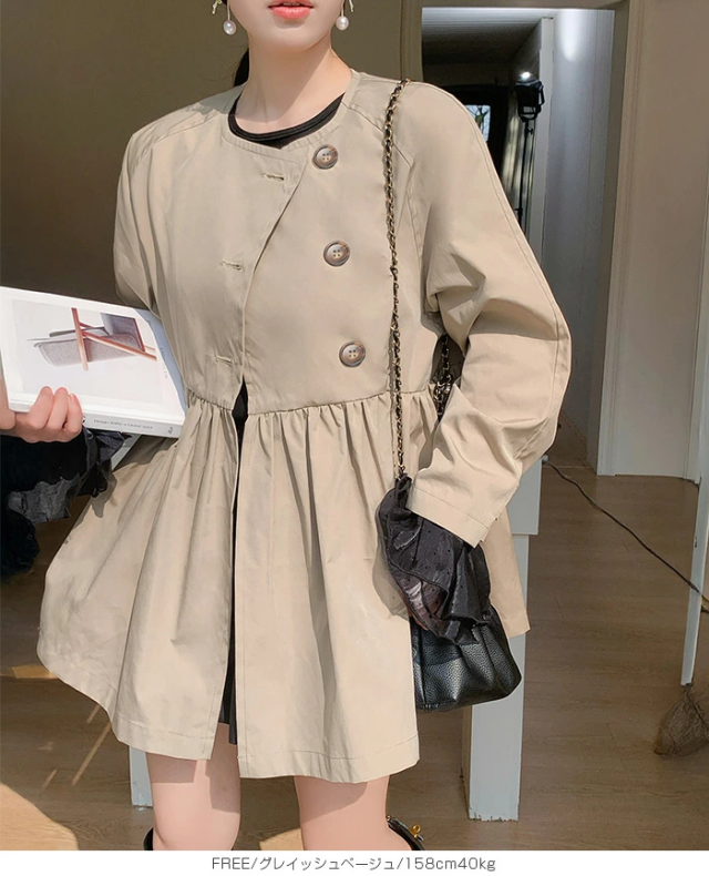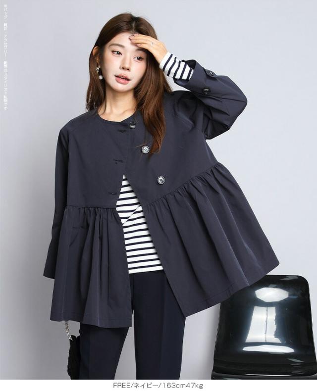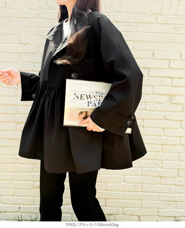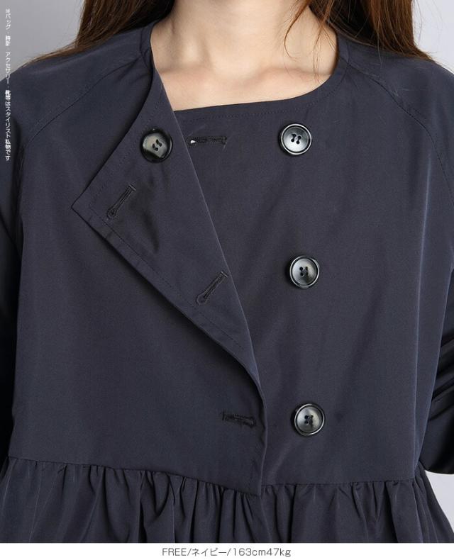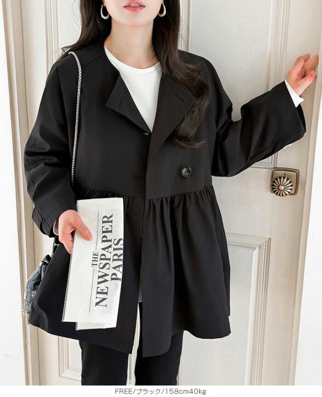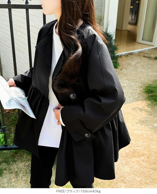 1,500円OFFクーポン!スプリングコートトレンチコート ペプラム コート アウター ライトアウター レディース 春 トレンチ ノーカラーコート 羽織り ウエスト切り替え ダブルボタン 黒 【ペプラムデザインスプリングコート】ダークエンジェル 春新作