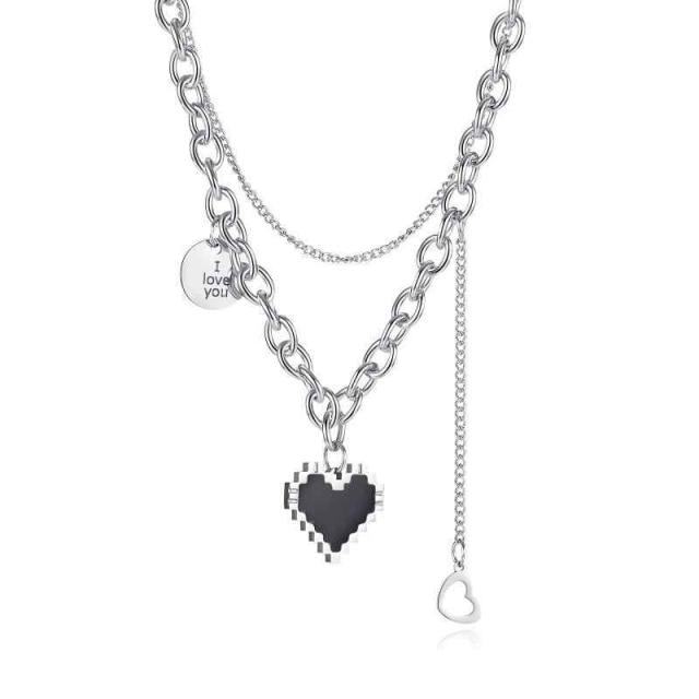[Deelfel] ネックレス シルバー レディース 二連 あずきチェーン イニシャルネックレス I LOVE YOU 刻印 心形 ハートペンダント チタン 金属アレルギー対応 友達 誕生日 新年 卒業式 パーティー プレゼント ヒップホップ ファッション