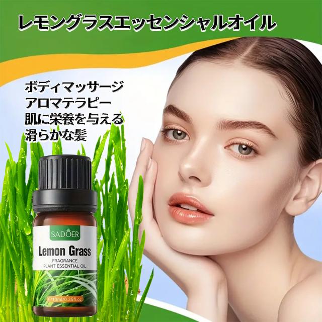 【3本セット】レモングラス精油、アロマ トリートメント オイル、ボディマッサージ、フェイスケア、ヘアケア、デイリーアロマ、マッサージ アロマ オイル、無添加無香料 100%天然成分、マッサージオイル 水溶性、フェムケア オイル (1本10ml/3本入り)