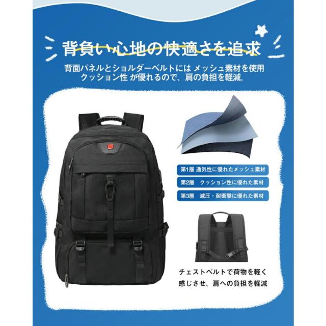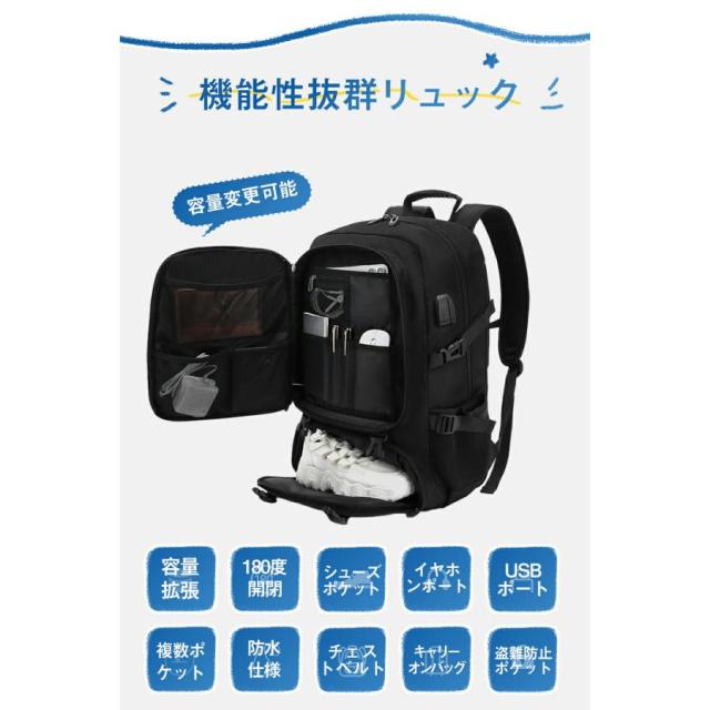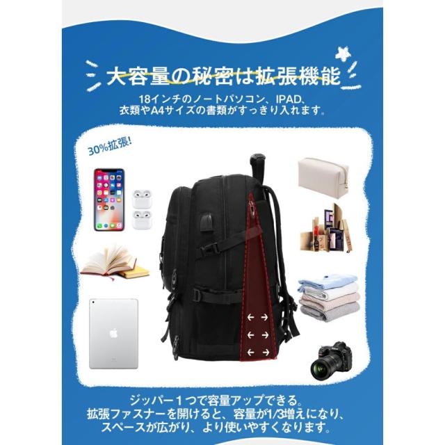 「クーポン配布中」ビジネスリュック バックパック ラップトップバック トラベルバッグ 通勤バッグ リュックパック 大容量 50L 80L 拡張機能 USB充電ポート付き 18インチPC収納 防災 旅行 軽量 防水 頑丈 通勤 通学 父の日 プレゼント