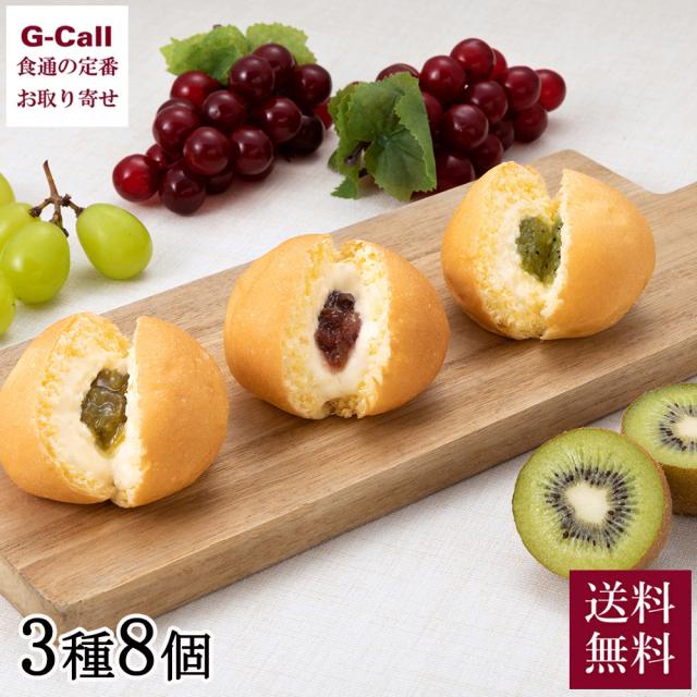 八天堂ファーム 果実なくりーむパン3種セット 計8個 送料無料 シャインマスカット 赤ぶどう ほらどキウイ 洋菓子 ギフト クリームパン 菓子パン メーカー直送
