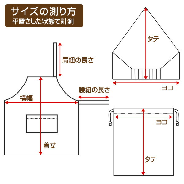 | 【三角巾】 (100〜120cm)頭囲:50〜55cm (130〜160cm)頭囲:54〜59cm 【巾着袋】 タテ28×ヨコ22cm(マチなし) |