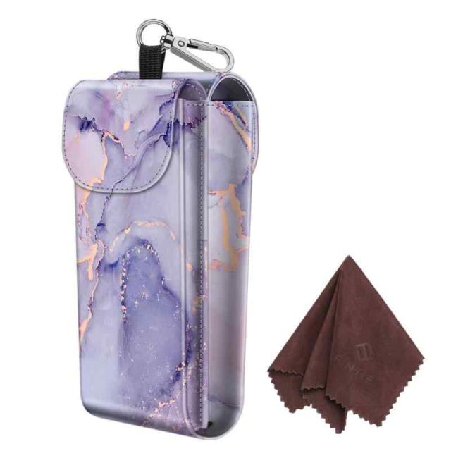 Fintie ダブルメガネケース カラビナフック付き ポータブル ヴィーガンレザー 眼鏡ケース 傷防止 サングラスポーチ (ライラック大理石)
