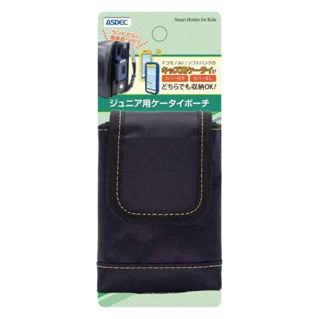 [ASDEC]ジュニア用ケータイ ケース ポーチ キッズケータイ キッズフォン mamorino 対応 【内寸(mm)】W60.5×H109.3×D18.5(約 ) ランドセル 取り付け可能 SH-JP01-Parent (ブラック)