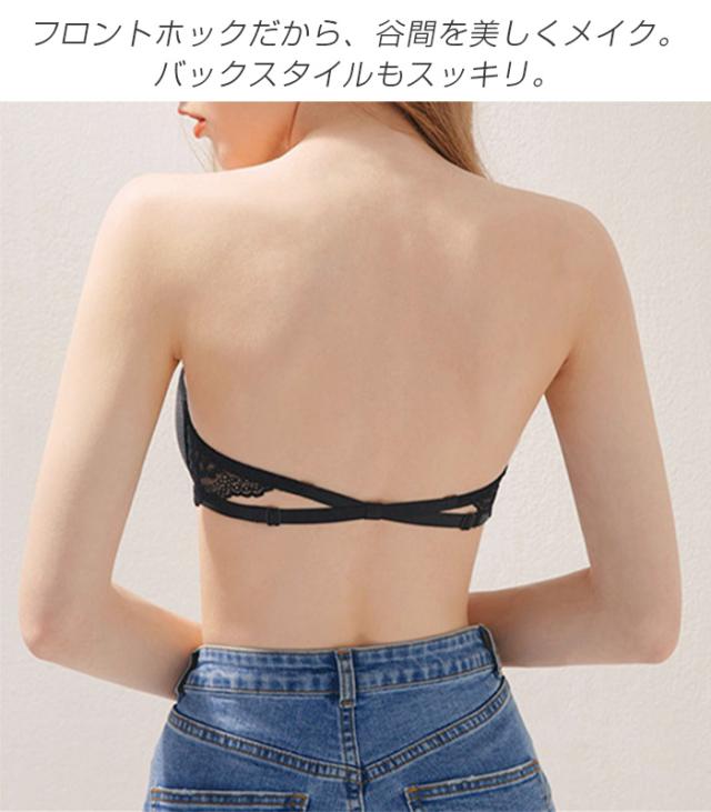1,500円OFFクーポン!ブラジャー ストラップレスブラ フロントホックブラ ズレ落ちない オフショルダー用ブラ 谷間メイク 滑り止め付ブラ レース 【 ズレ落ちない!サイドレースダブルホックストラップレスブラ 】 ダークエンジェル 春新作 ●即納●