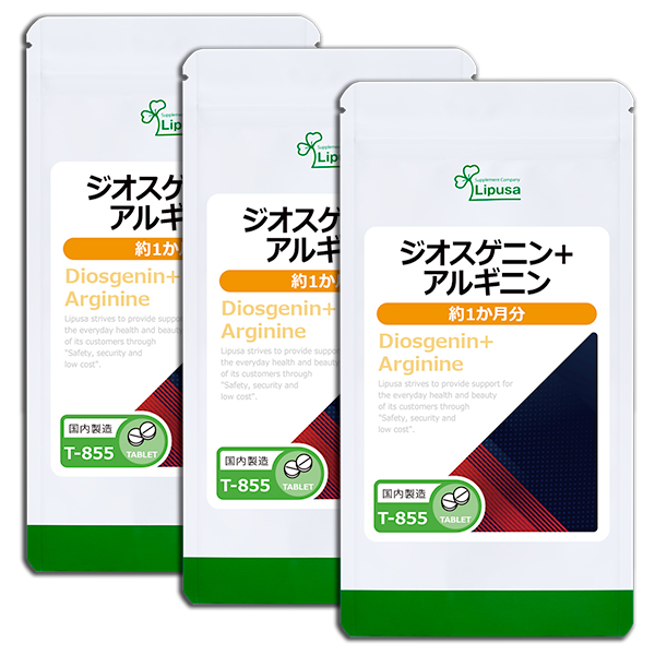 ジオスゲニン+アルギニン 約1か月分×3袋 T-855-3 (60粒×3袋) 送料無料 健康維持 うっかり 山芋 ヤマイモ アルギニン サプリ リプサ Lipusa 公式 agesugi_sbe