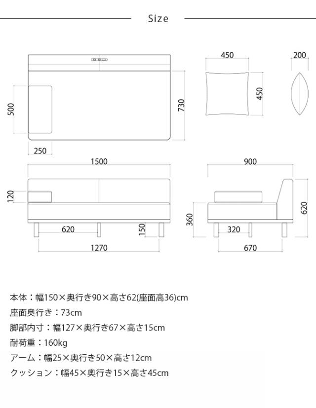 ■商品サイズ:本体:幅150×奥行き90×高さ62(座面高36)cm
