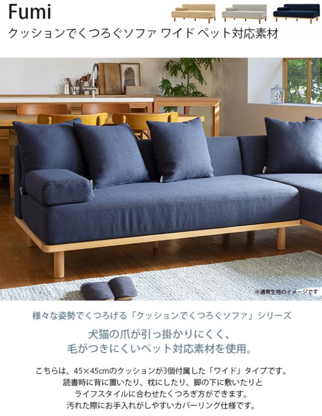 Fumi フミ クッションでくつろぐソファ ワイド ペット対応素材 ソファ ユニットソファ 2人掛け ペット 引っかきに強い 猫 犬 撥水 洗える 北欧