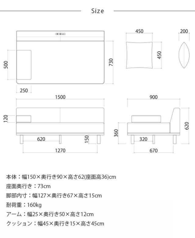 ■商品サイズ:本体:幅150×奥行き90×高さ62(座面高36)cm