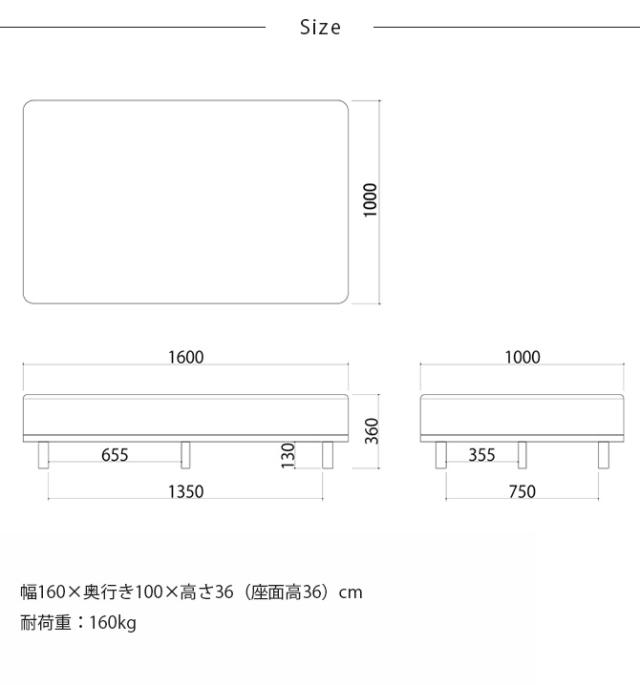 ■商品サイズ:幅160×奥行き100×高さ34(座面高34)cm