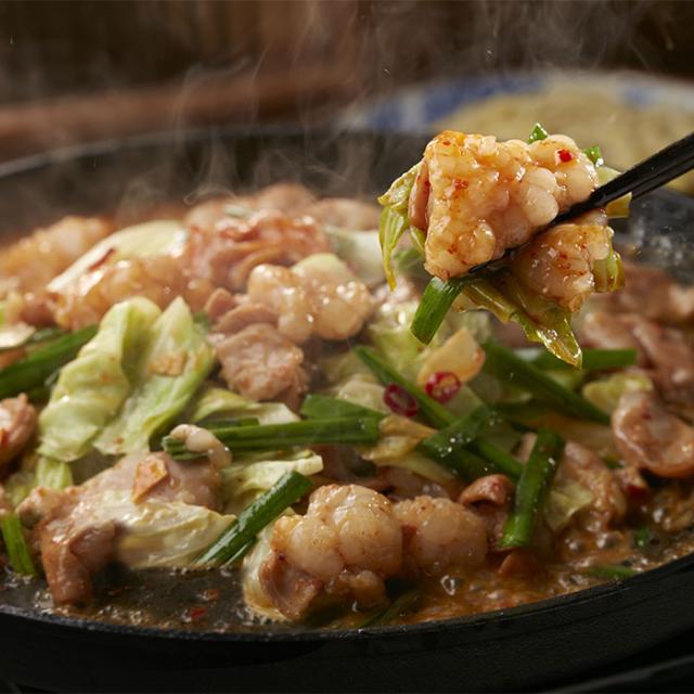 辛みそだれで味付けした国産牛小腸と、鶏はらみを熱々の鉄板で焼きあげる「もつ鉄板」のセットです。ビールやお酒のアテとしてはもちろん、ご飯との相性もピッタリ。残ったタレとちゃんぽん麺を絡めた〆まで絶品です。