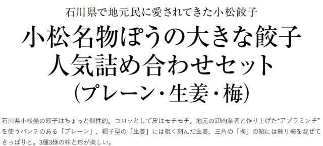 小松名物ぽうの大きな餃子人気詰め合わせセット(プレーン・生姜・梅) ぎょうざ ギョウザ 石川県 北陸 餃子パーティ ホムパ 家飲み 御歳暮ギフト