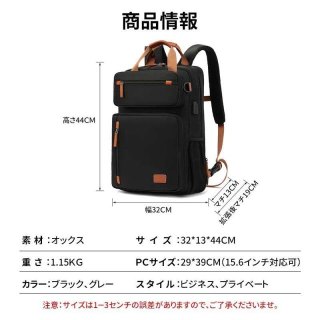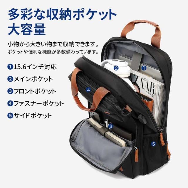 「クーポン配布中」ビジネスリュック リュック メンズ リュックサック 大容量 拡張 軽量 撥水 3way バッグ 15.6インチPC収納 大容量 リュックサック トラベルバッグ パソコンバッグ バッグパック 多機能 USB充電ポート 機内持ち込み 通勤 通学 旅行 出張 父の日 プレゼント