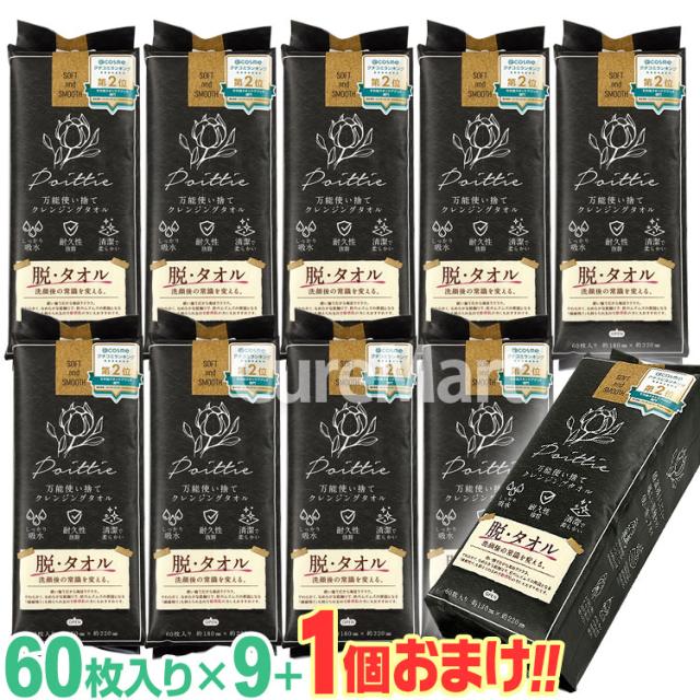 ポイッティー 万能使い捨て クレンジングタオル 60枚入◆9+1個おまけ 計10個セット 破れにくい滅菌処理済の不織布 お肌にやさしいレーヨン素材の使い捨てフェイスタオル