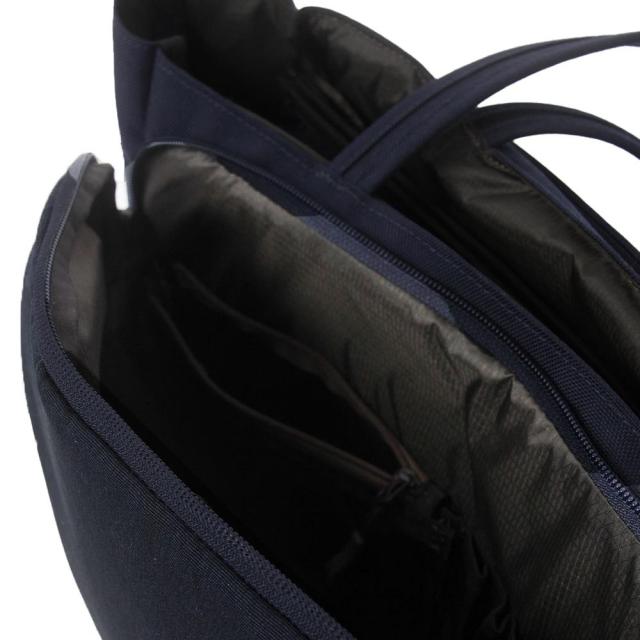 外側のファスナーポケット内には、仕分けのしやすい内部ポケットが豊富についています。ファスナー付きのスマートフォンポケットや、ペンホルダーなどを瞬時に出し入れが便利。