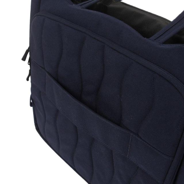 背面にはPCを入れるのに便利なファスナーポケットを完備。厚ウレタン芯材を入れているので持ち運びも安心です。
