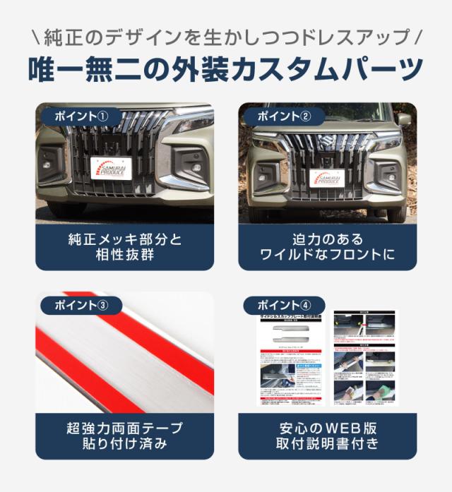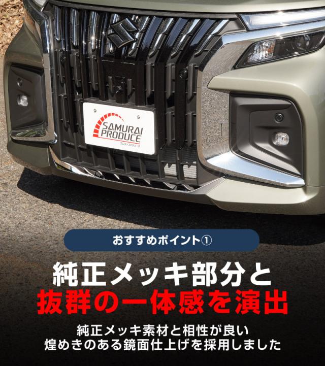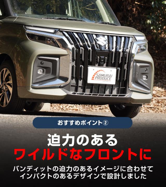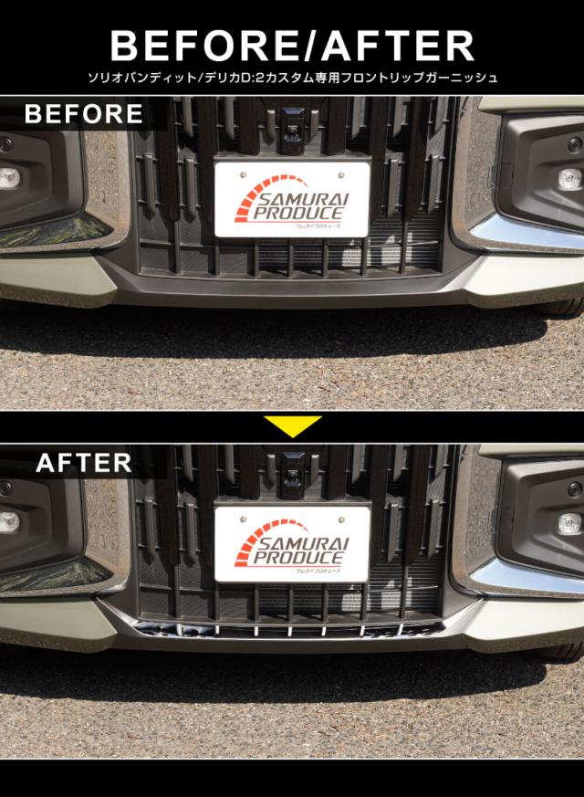 新型ソリオバンディット・デリカD:2カスタム専用設計のフロントマスク下部のリップ部分に装着するドレスアップパーツです。
