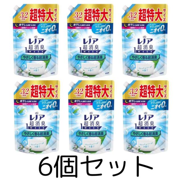 【6個セット】レノア 超消臭1WEEK フレッシュソープの香り つめかえ用 1280ml